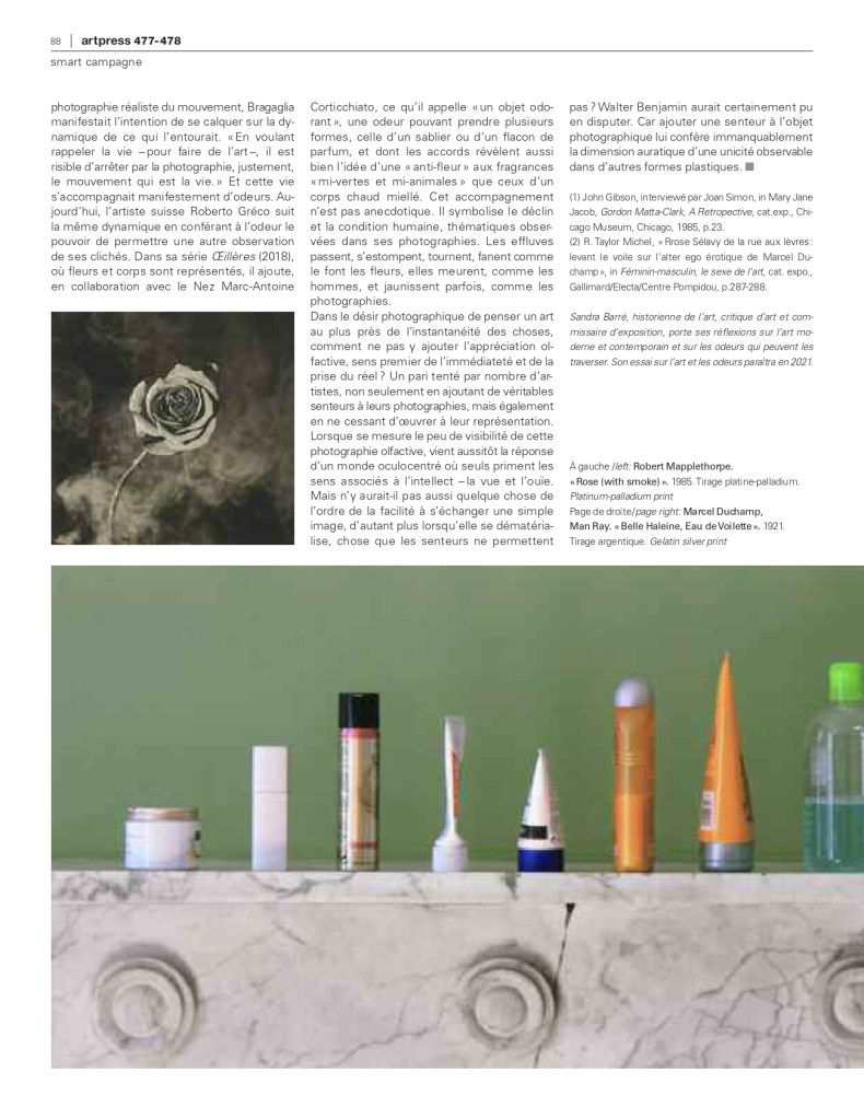 L’olfaction, l’à-côté photographique Publié parSandra Barré30 Mai 202014 juin 2022Publié dansDossierÉtiquettes :Art olfactif, artpress, photographie Similaire Publié par Sandra Barré critique d'art • commissaire indépendante • chercheuse Voir plus d’articles