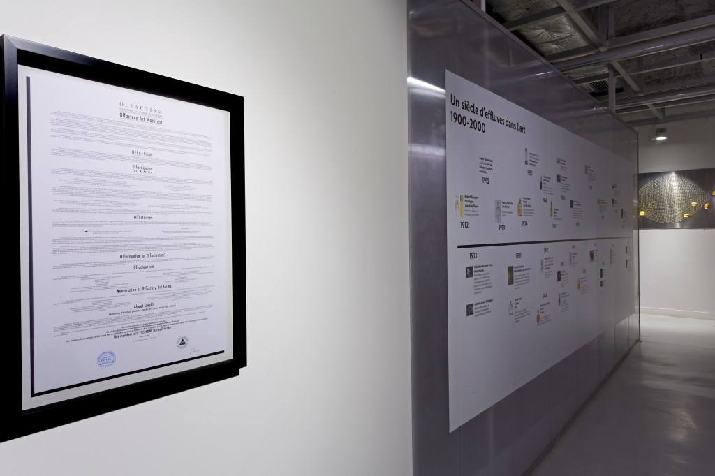 Voyage dans une autre histoire de l’art. Une histoire où l’œil n’est plus roi, où l’intellect n’est plus seul à diriger l’expérience, et où la contemplation n’est plus à distance, mais absorbée tout près pour être logée non loin du cœur. L’exposition « Horizons Olfactifs » propose aux visiteurs et aux visiteuses de faire un mouvement de côté et de considérer ce que l’on appelle « art » par le souffle. Car du voir au sentir, il n’y a qu’un pas et les artistes, depuis le début du XXe siècle, n’ont de cesse de l’enjamber.